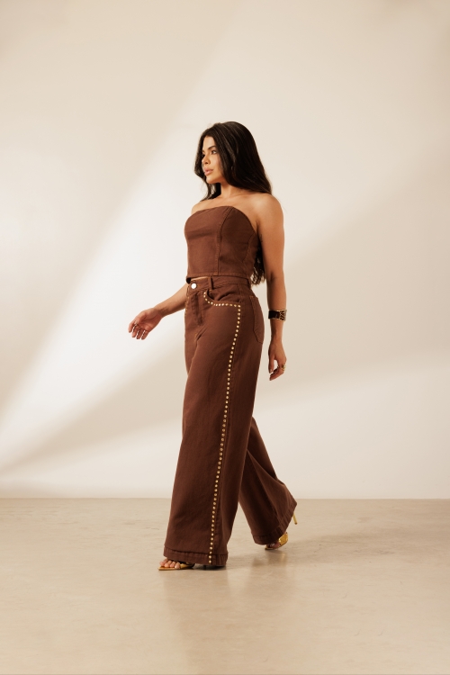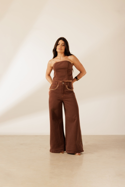Corset Íris em jeans estruturado, com recortes que valorizam o caimento. Possui zíper destacável nas costas, trazendo praticidade ao vestir. Confeccionado em tecido 100% algodão.