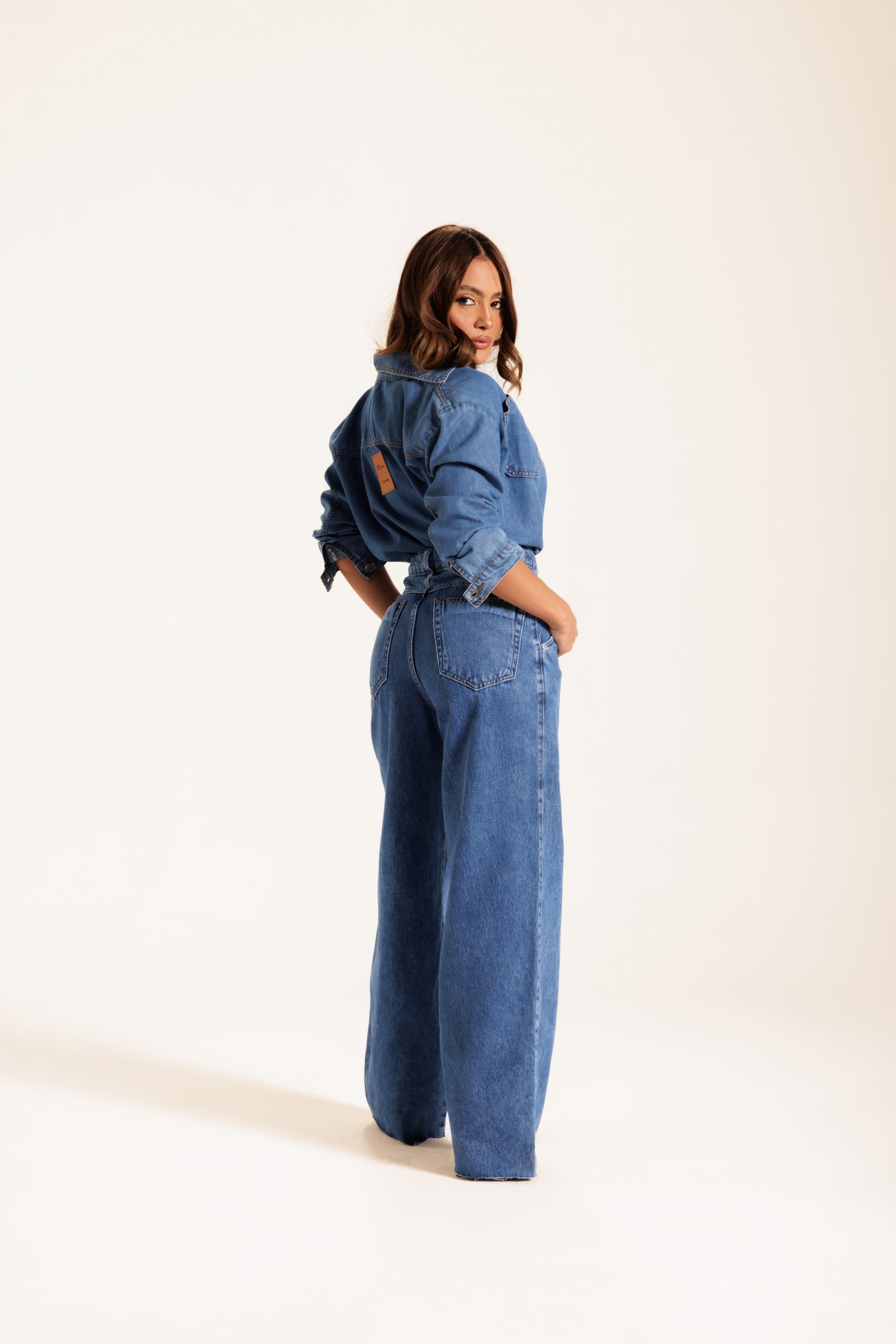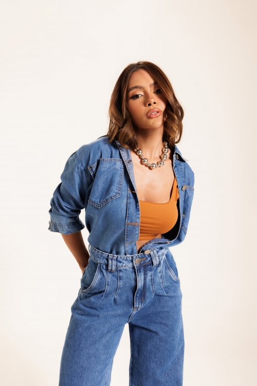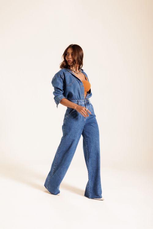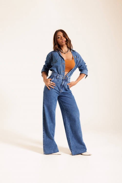 Calça desenvolvida em tecido 100% algodão, pregas frontais e lavagem intermediária.