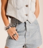 Short Mary com estampa de cobra em tom claro, modelagem reta e cintura média. Possui barra desfiada e acabamento clássico. Confeccionado em tecido 100% algodão.