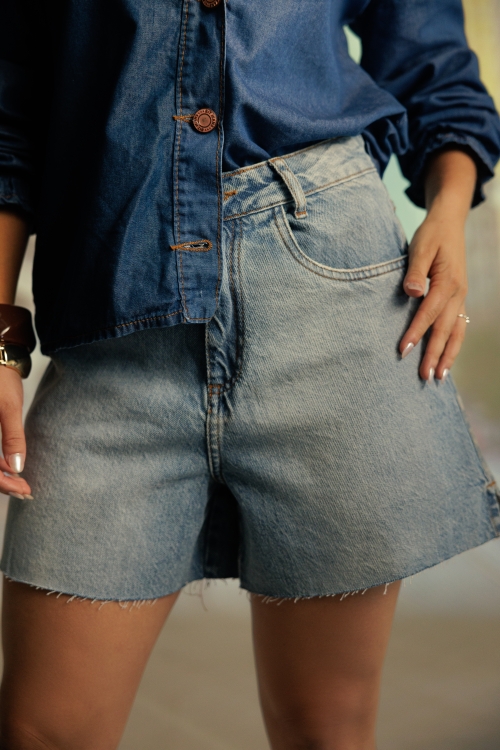 Bermuda Daisy com modelagem reta e fenda lateral discreta. Possui acabamento desfiado, trazendo um toque moderno e descomplicado. Confeccionada em tecido 100% algodão.