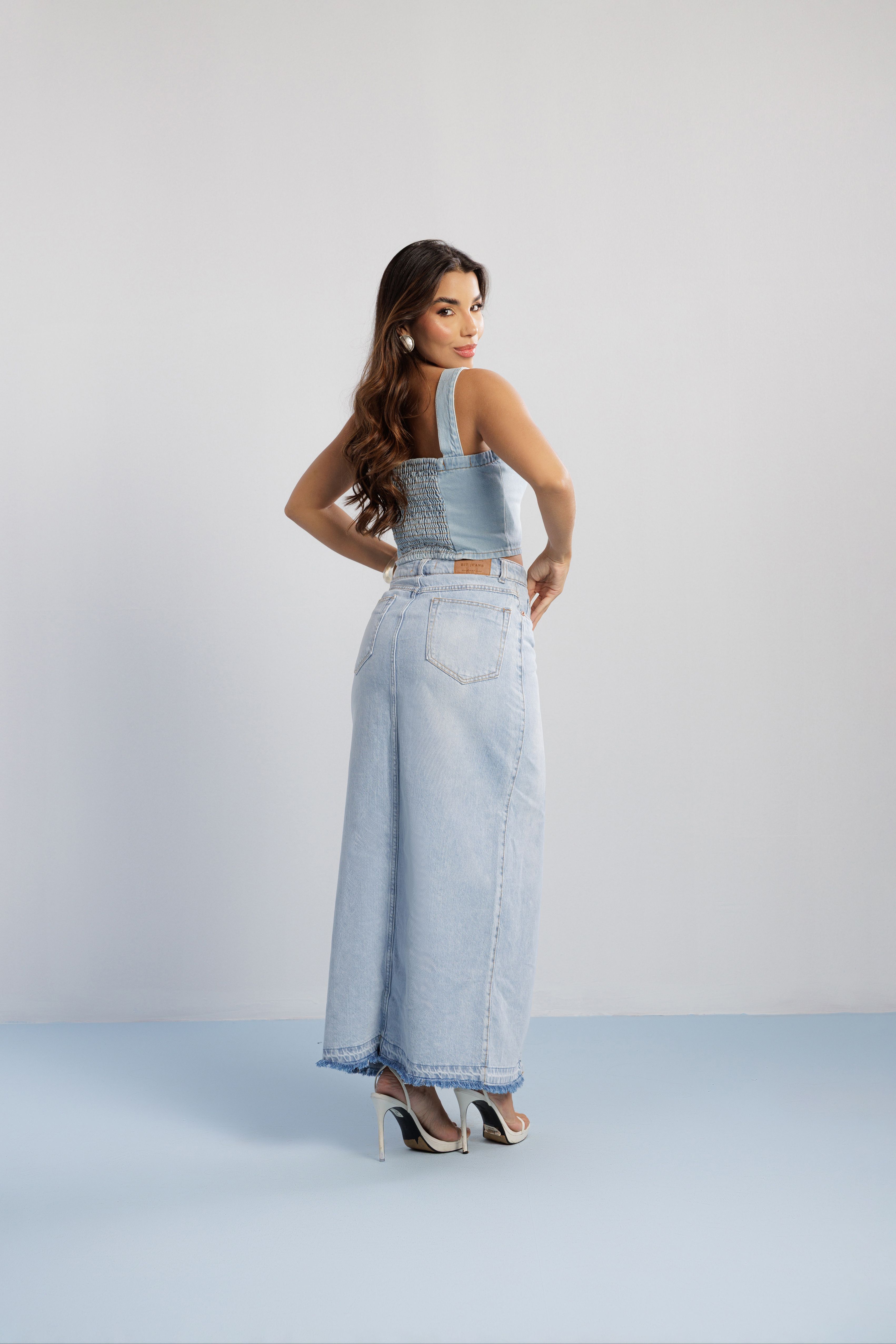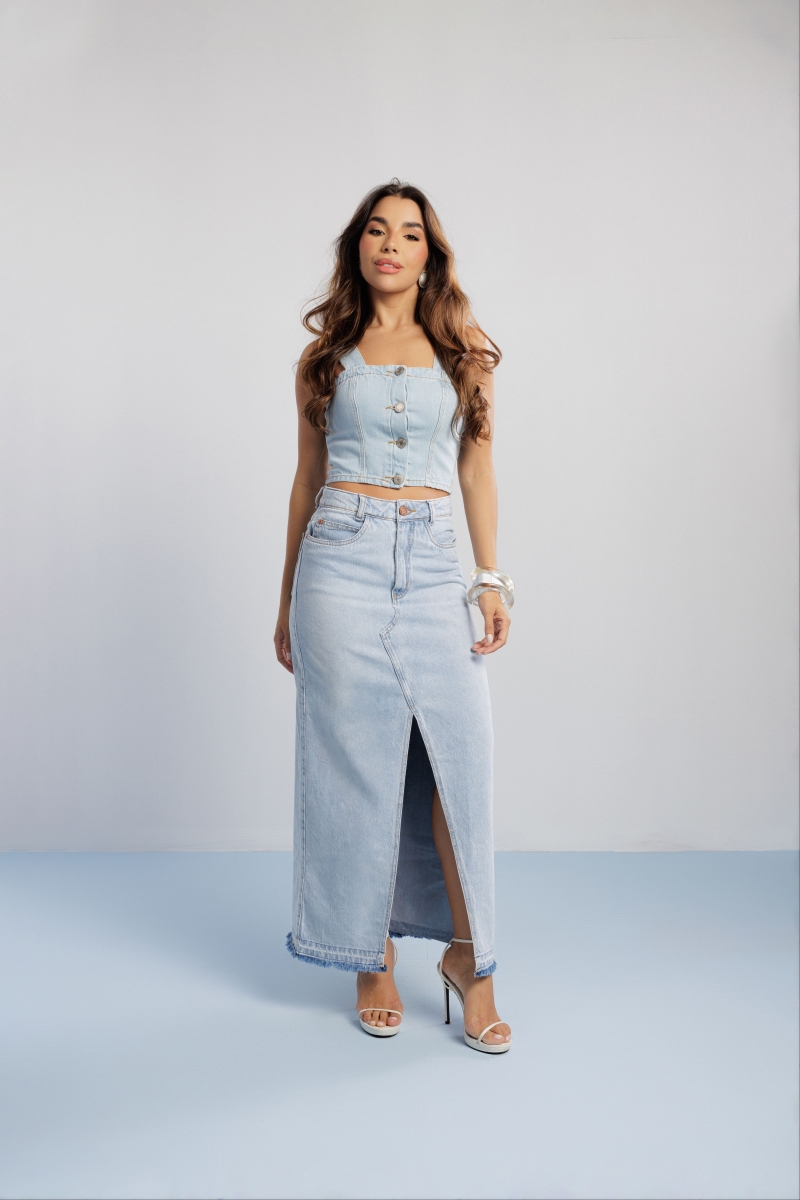 Cropped Marília com botões frontais e recortes que valorizam a modelagem. Possui costas com elástico para melhor ajuste ao corpo. Confeccionado em tecido 100% algodão.