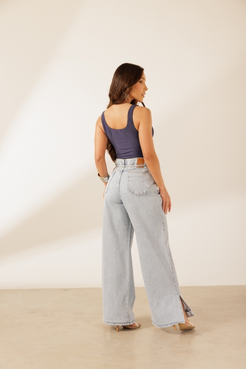 Calça Rafa em 100% algodão, com cadarço no cós que traz detalhe despojado. Possui fenda lateral na barra, finalizada com bainha, e modelagem reta que garante caimento leve.