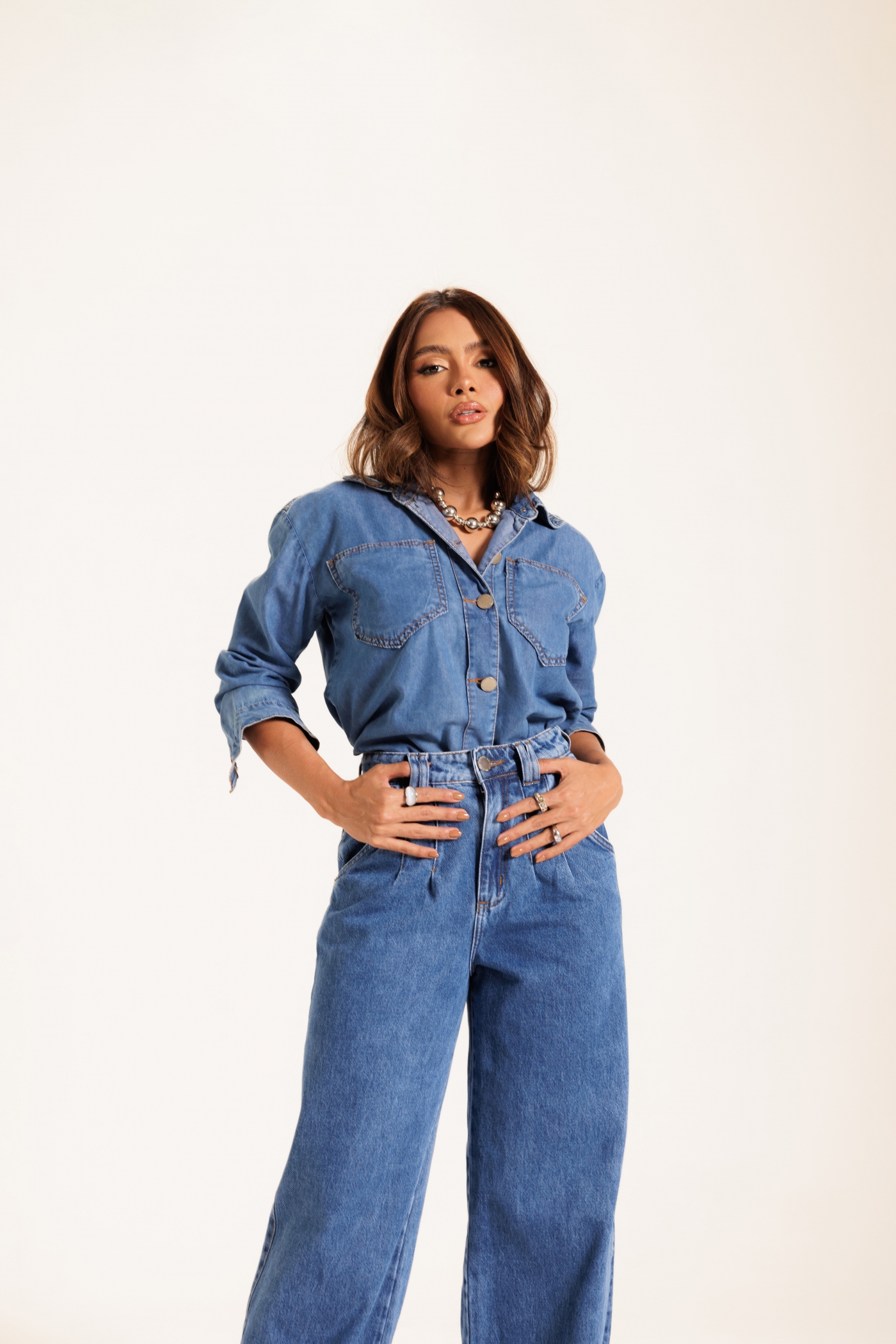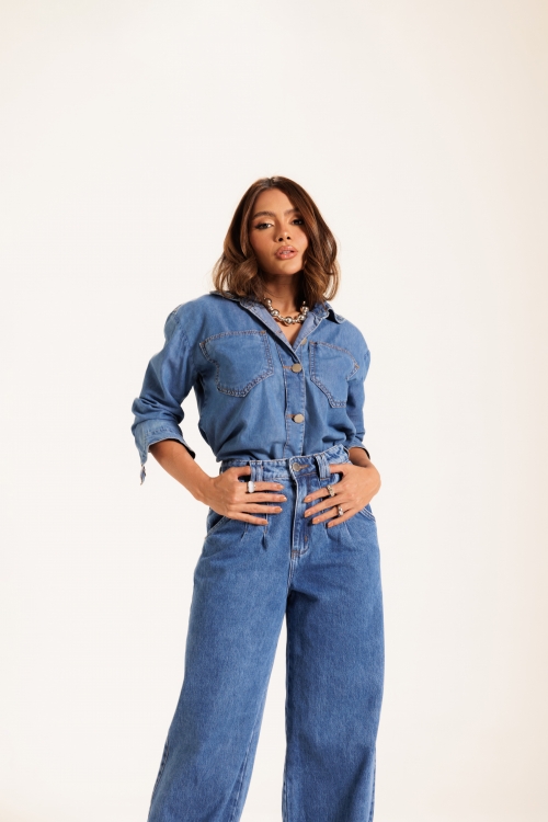 Camisa Agatha em tecido 65% algodão e 35% liocel, com lavagem amaciada. Possui bolsos frontais, trazendo praticidade e estilo casual.