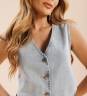 Colete Horus 100% algodão, com decote em V, fechamento frontal por três botões e modelagem com barra assimétrica. Peça em lavagem clara que traz um ar descontraído e atual.