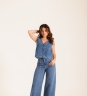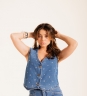 Colete Paola com aplicação de tachas na parte frontal e modelagem moderna. Possui decote em V, fechamento por botões e barra levemente assimétrica. Confeccionado em tecido 100% algodão.