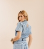 Macaquinho Amanda em lavagem amaciada, com leve modelagem asa delta. Feito em 100% algodão, com botões frontais e bolsos funcionais.