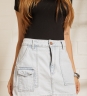 Saia Cargo Alexa estilo cargo, com lavagem clara e bolsos frontais com aba. Barra levemente desfiada. Confeccionada em tecido 100% algodão.