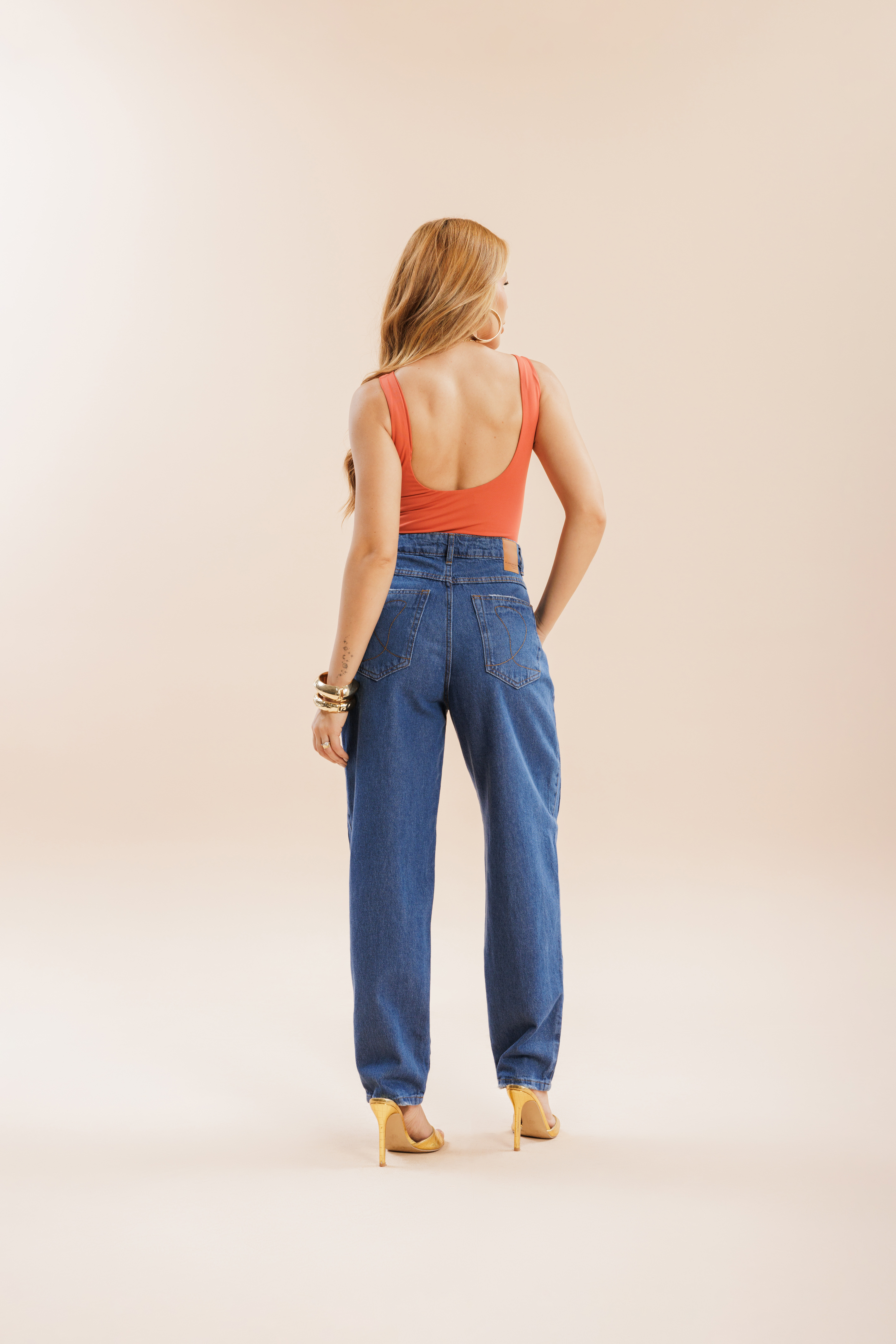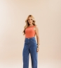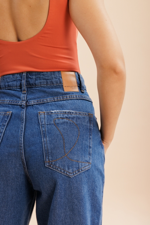 Calça Ballon Thay, com recortes de costura que se deslocam para a frente e barra levemente afunilada. Confeccionada em tecido 100% algodão.