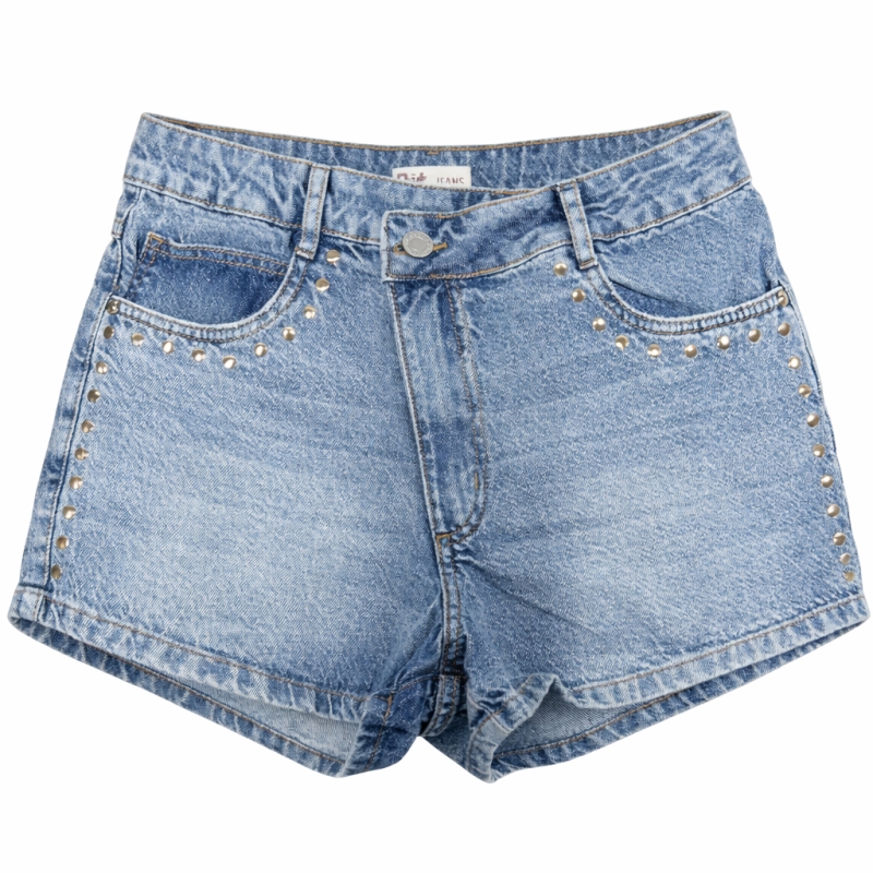 Short em tecido 100% algodão com modelagem de curvatura levemente assimétrica, trazendo um caimento moderno e tachinhas aplicadas nas laterais e contorno dos bolsos. Barra finalizada com dobra suave para um visual casual e fácil de usar no dia a dia.