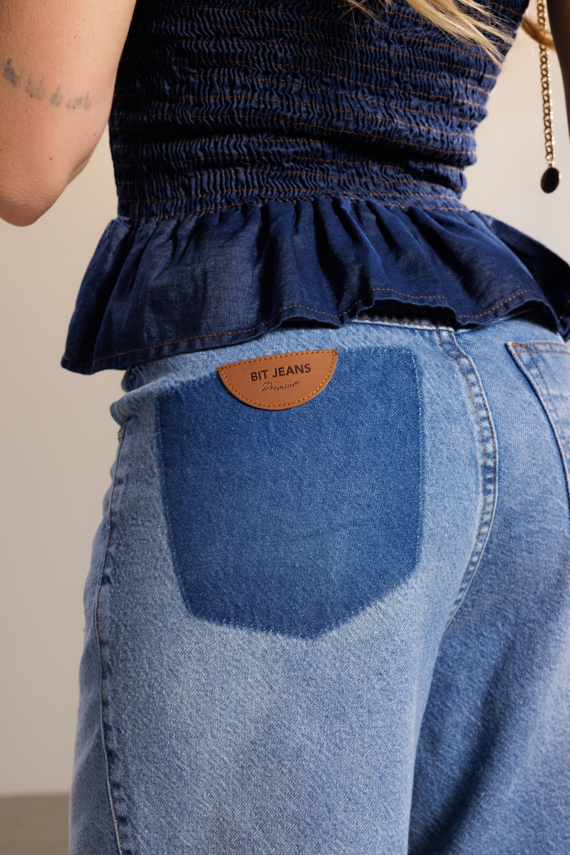 Bermuda Júlia com pences na frente, trazendo caimento mais alinhado. Possui bolso traseiro com detalhe em lavagem contrastante. Confeccionada em tecido 100% algodão.