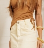 Saia Talita em tom amarelo manteiga, com barra de 2 cm que garante um acabamento limpo e bem definido. Possui bolsos frontais funcionais e bolso relógio, em jeans 100% algodão com toque firme e confortável para o dia a dia.