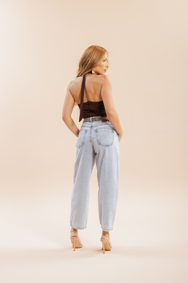Calça Luci de lavagem clara com modelagem levemente barrel, trazendo volume suave nas pernas e ajuste mais sequinho na barra. O cós estruturado e o caimento mais solto garantem conforto no uso. Confeccionada em 100% algodão.