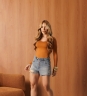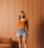 Short Marina com cós diferenciado e fechamento por botões aparentes, trazendo um detalhe na parte frontal. O leve detonado e a barra desfiada reforçam o visual, enquanto a modelagem ajusta ao corpo com conforto. Confeccionado em 100% algodão.
