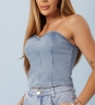Corset Yana tomara que caia com recortes marcados e leve assimetria na barra. Possui zíper destacável nas costas e shape justo que valoriza o corpo. Um básico nada básico pro look jeans com jeans.