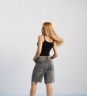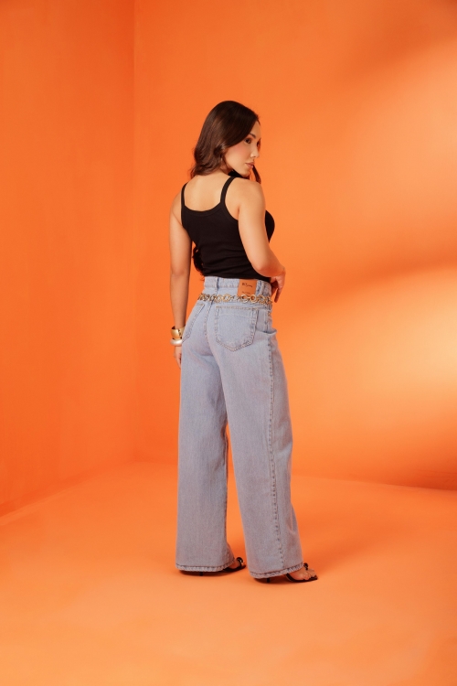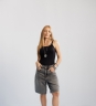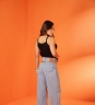 Regata preta em malha canelada, com alças médias e decote levemente arredondado. O modelo é ajustado ao corpo, valorizando a silhueta com conforto.