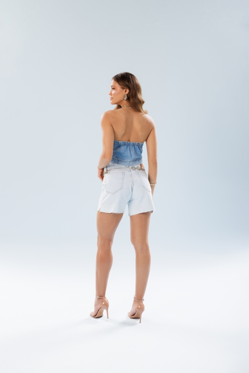 Bermuda Flow em 100% algodão, com comprimento médio e fendas laterais. Acabamento de barra desfiada, trazendo um visual casual e despojado.