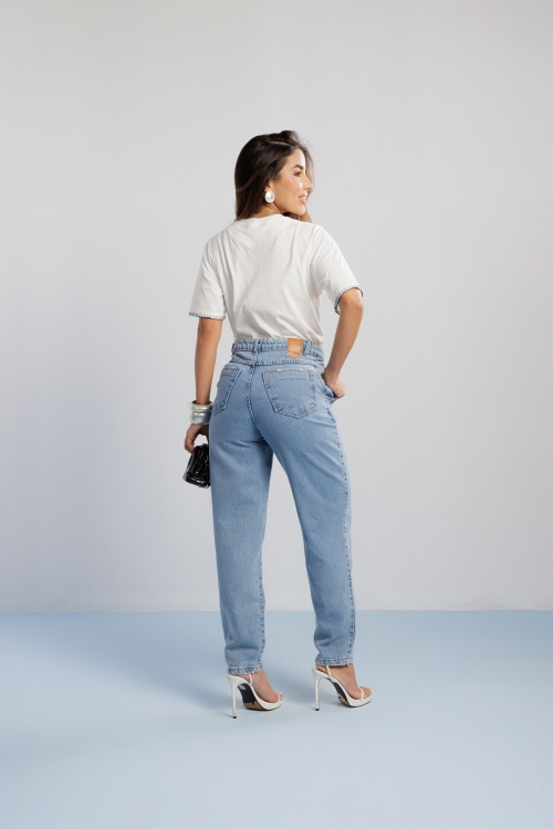 T-Shirt Savana off white com detalhe de ponto palito azul marinho nas mangas. Confeccionada em tecido leve e confortável.