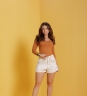 Short Beck em algodão com aplicação de taxas em cobre contornando os bolsos frontais. Modelagem levemente asa delta e caimento mais solto nas pernas. Composição: 100% algodão.