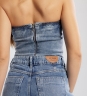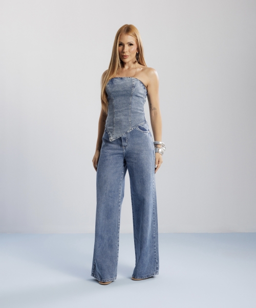 Top Candy, com recortes aparentes e barra assimétrica em ponta frontal. Possui zíper destacável nas costas com fenda logo abaixo. Confeccionada em tecido 97% algodão e 3% elastano.