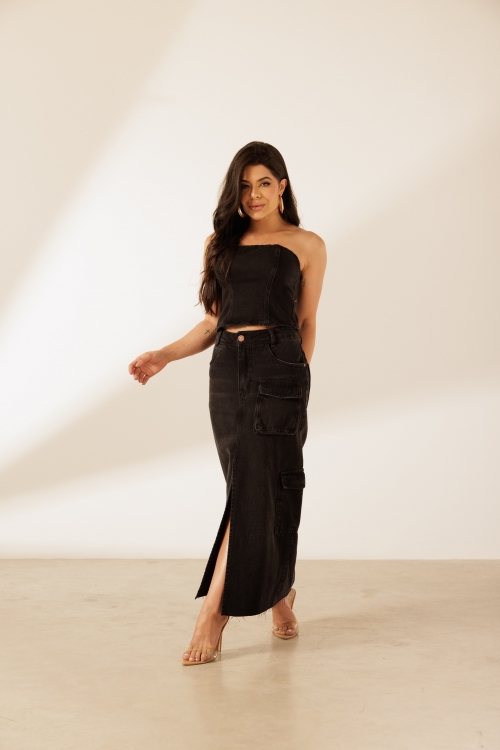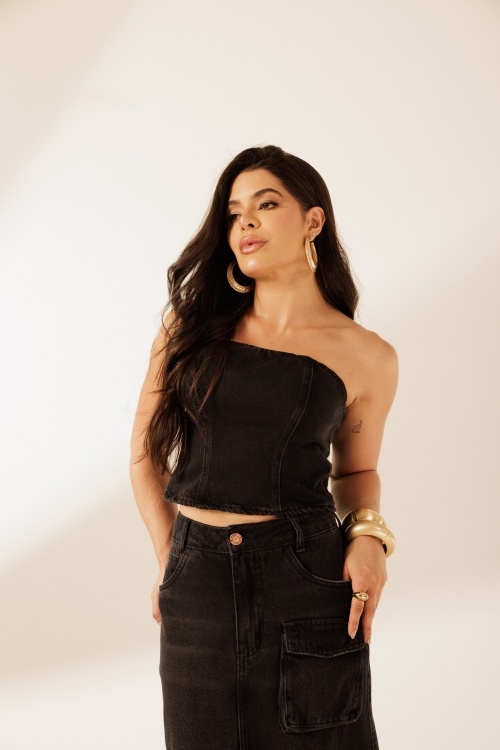Corset Bali confeccionado em 100% algodão. Possui recortes frontais que estruturam a peça e fechamento nas costas com zíper de metal destacável.