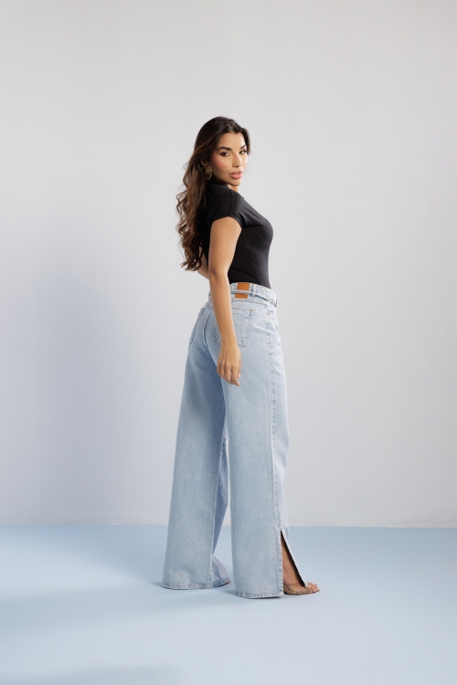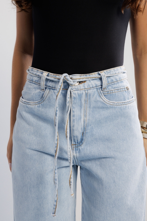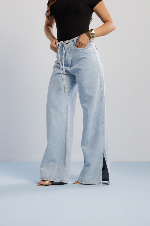 Calça Rafa em 100% algodão, com cadarço no cós que traz detalhe despojado. Possui fenda lateral na barra, finalizada com bainha, e modelagem reta que garante caimento leve.